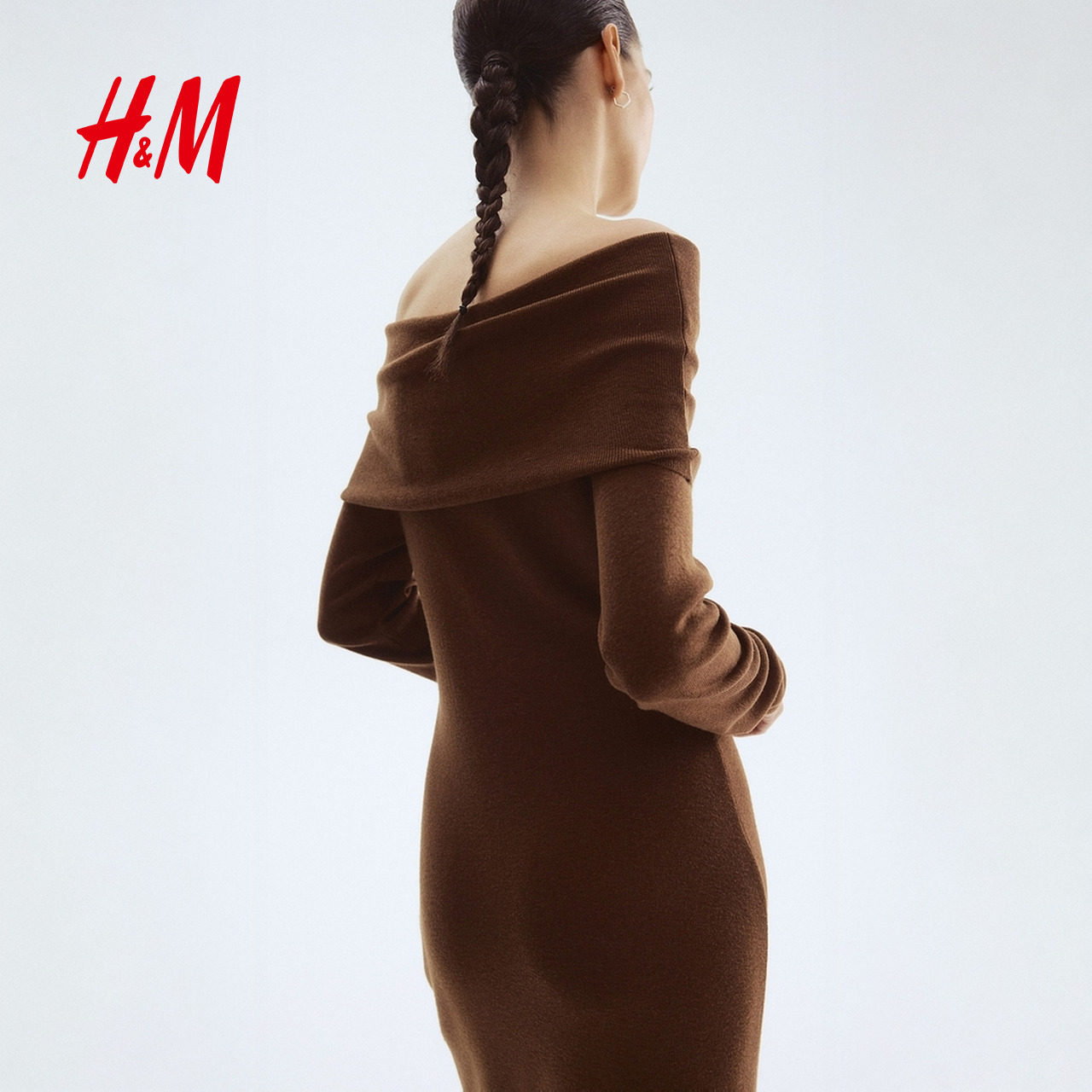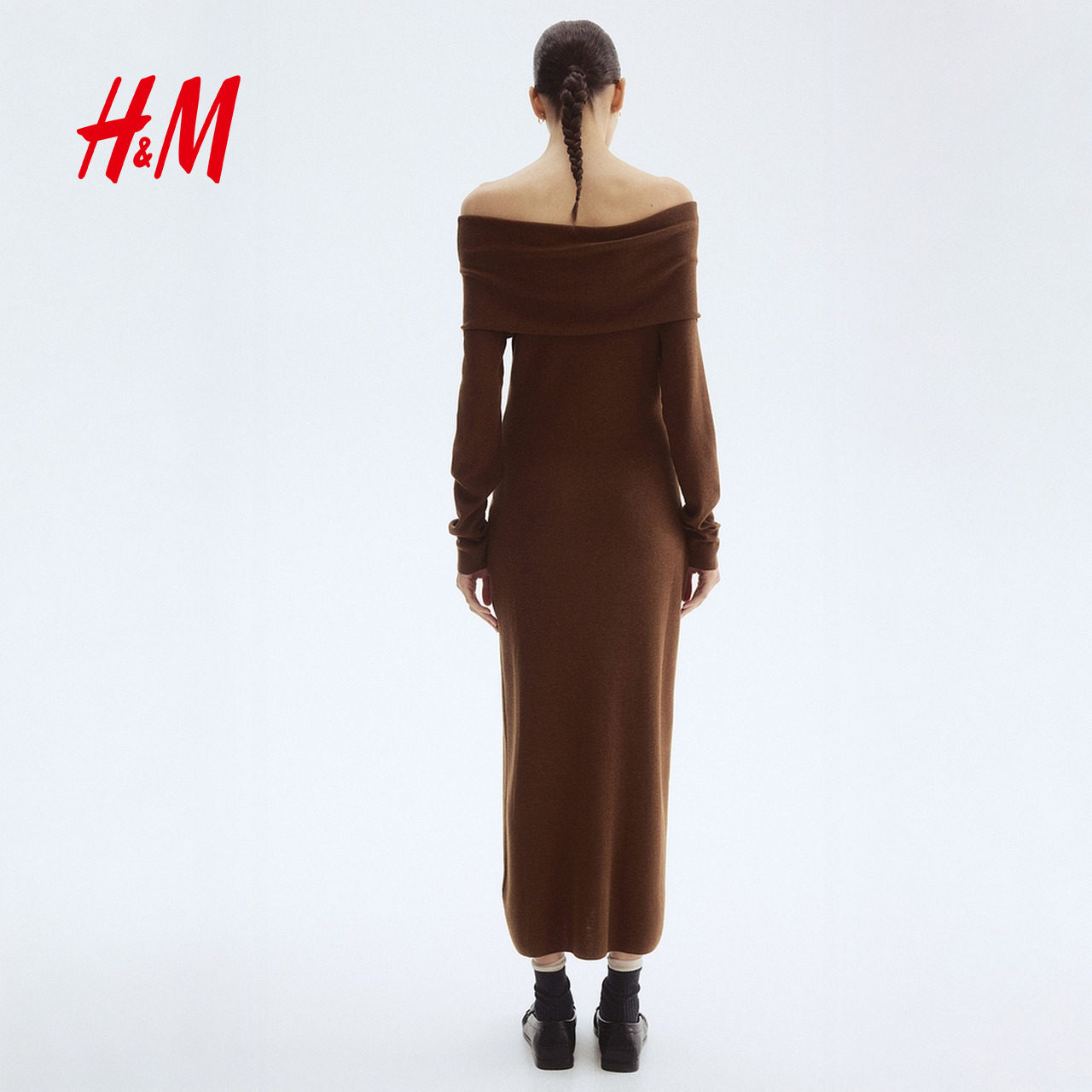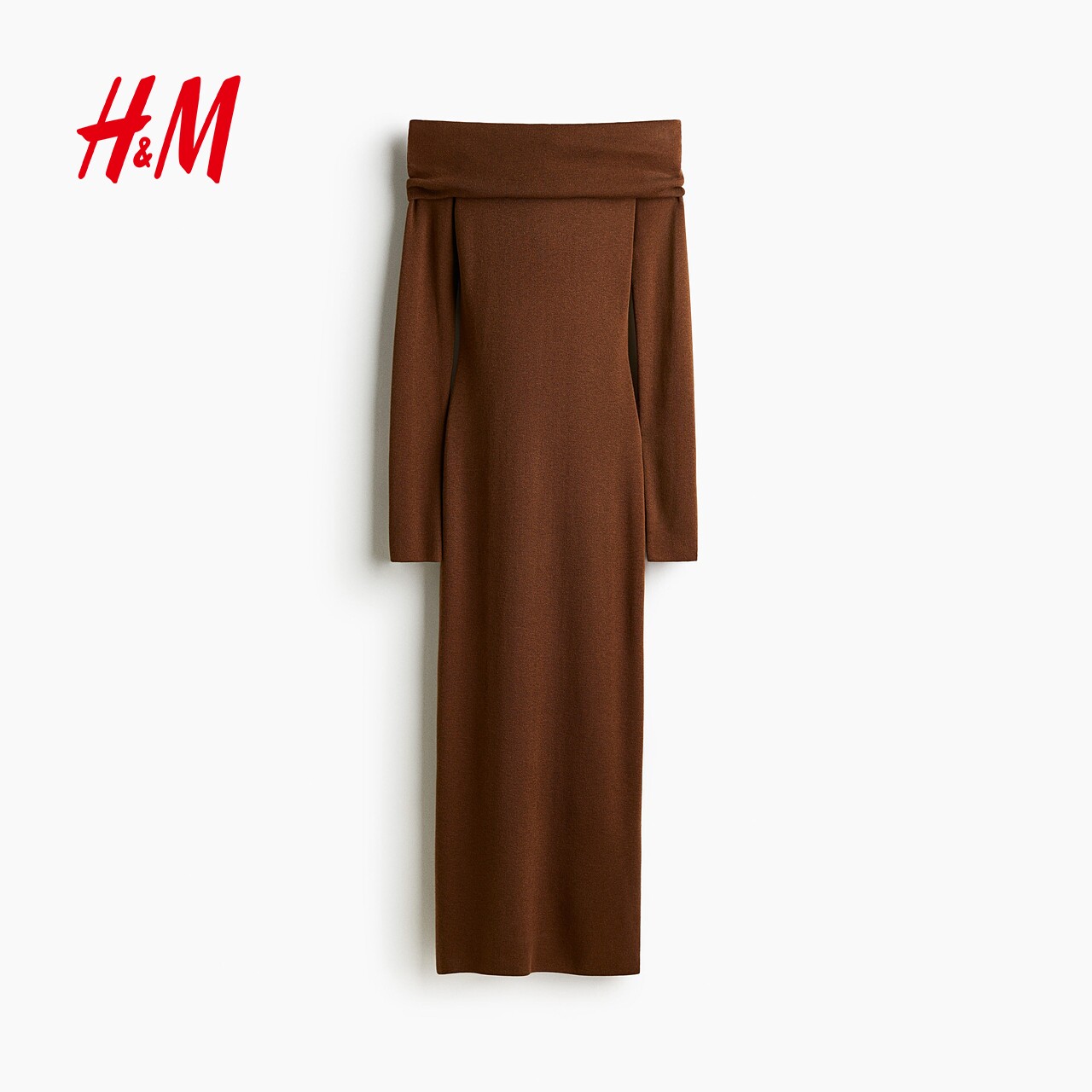 HM女装连衣裙春季静奢风修身时尚优雅休闲露肩连身裙长裙1294644