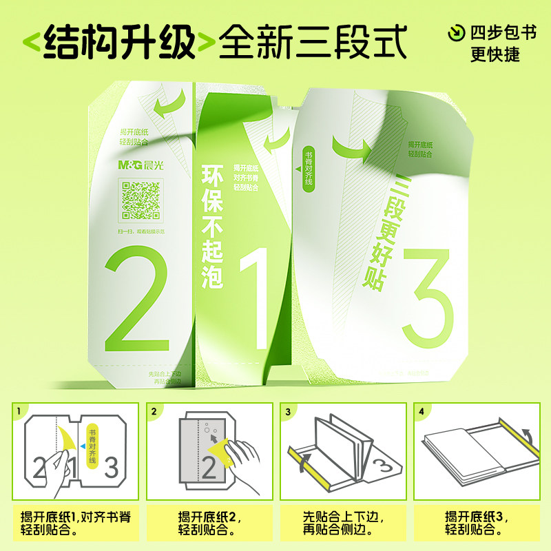 晨光书皮包书皮自粘透明磨砂16K贴纸书套加厚分段式A4包书膜防水耐磨全国中小学生教材通用包装纸课本保护套