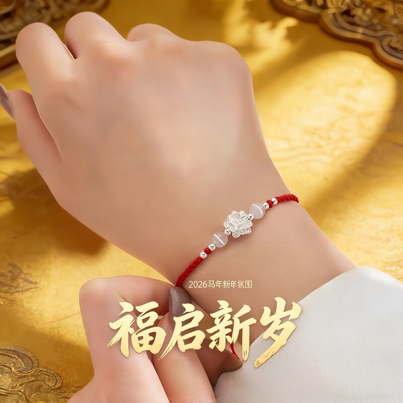 新年中式莲花手链女古风手工编织可调节手绳国风手饰情侣款送闺蜜