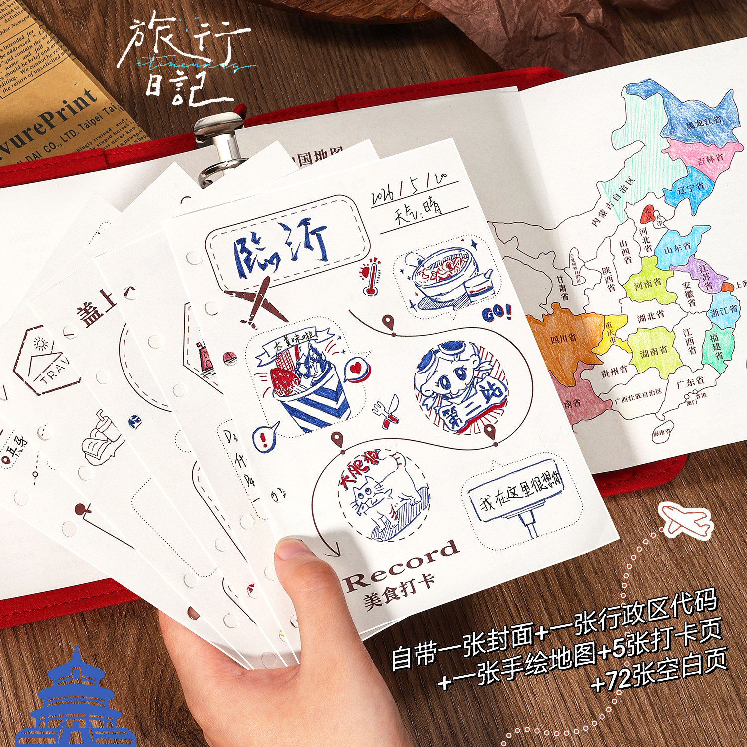 旅行盖章本活页全国旅游打卡收集本子a5文创高颜值私人南京北京故宫博物院纪念馆手帐本景点印章集章册空白本