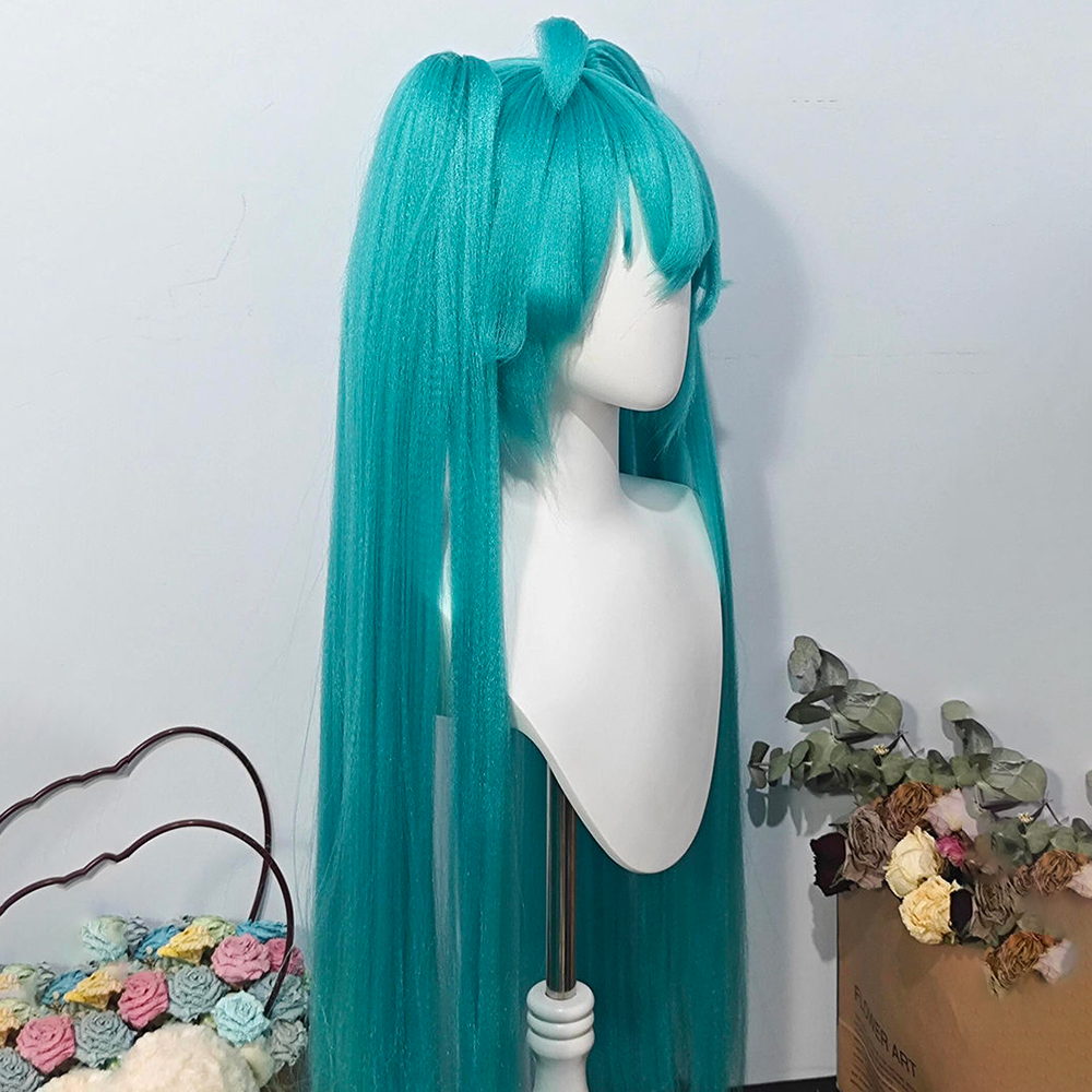 初音未来双马尾同款cos假头套120cm超长假头发二次元湖绿色漫展