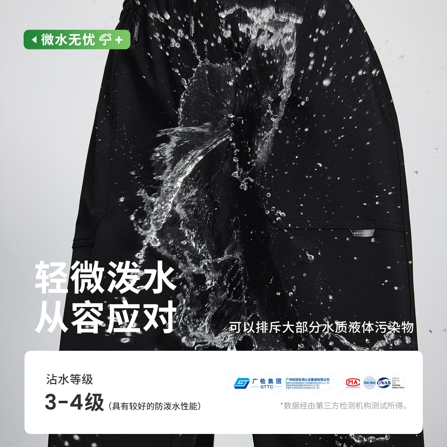 Navigare意大利小帆船黑色三防休闲裤男2026春季新款松紧腰直筒裤