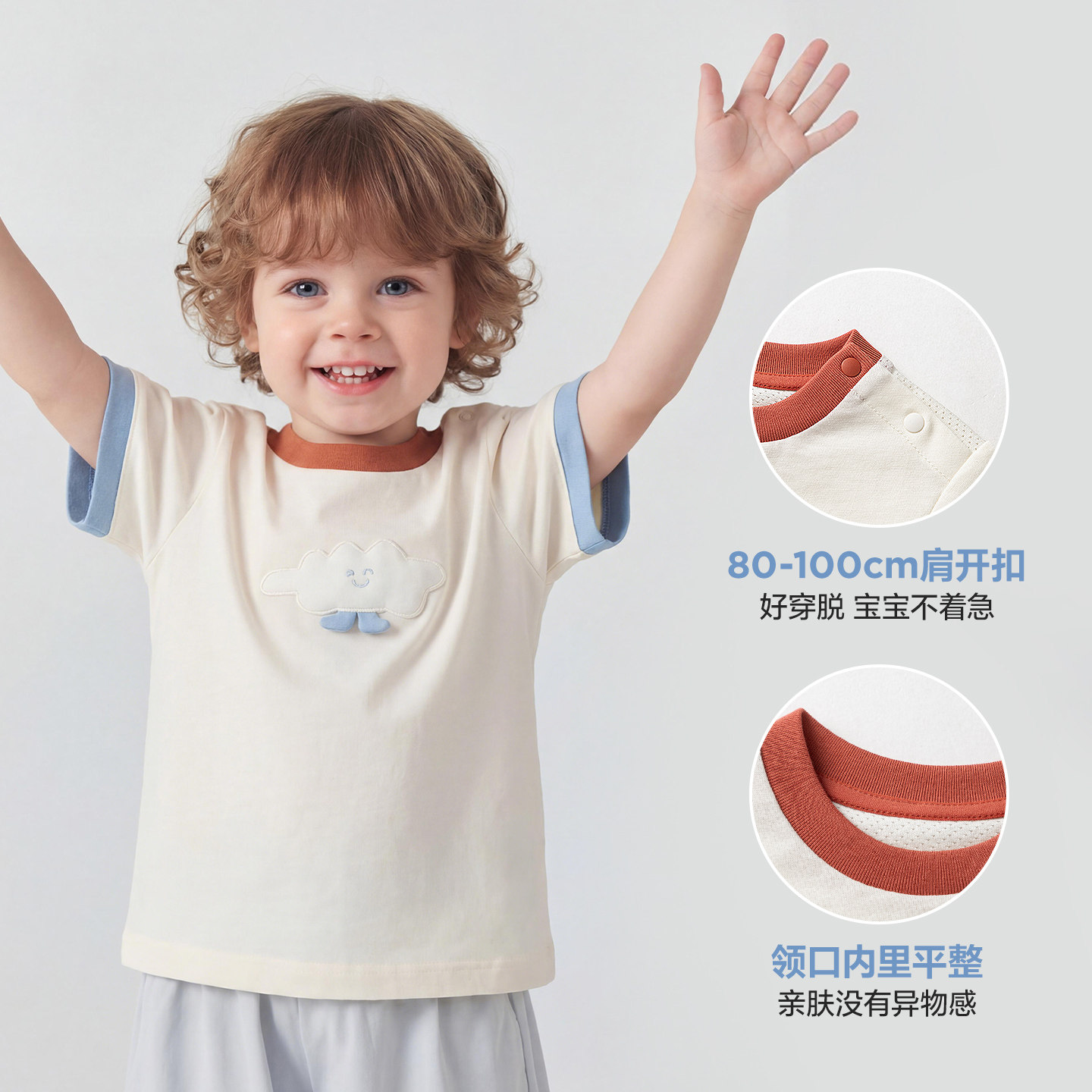 [云朵T]迷你巴拉巴拉儿童短袖T恤纯棉宝宝网眼透气婴儿上衣26夏款