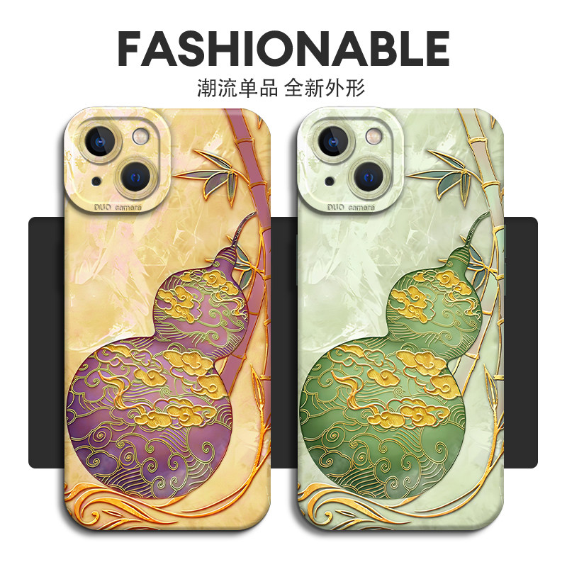 金丝福禄手机壳适用苹果16葫芦iphone15promax新中式14plus国风13mini高级感12小众11情侣8好运7新款xs硅胶xr