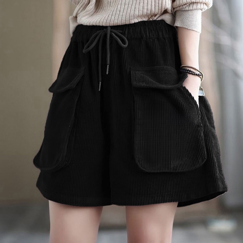 大码灯芯绒短裤春夏新款300复古宽松中国风口袋钩花休闲阔腿靴裤