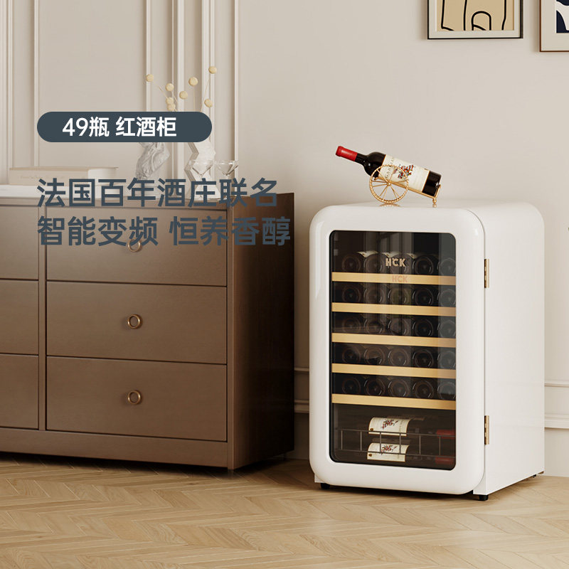 HCK哈士奇130RDA复古红酒柜49瓶恒温客厅家用小型冰吧冰箱冷藏柜