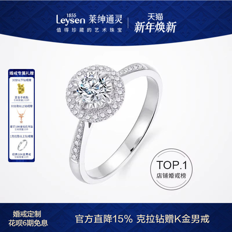 莱绅通灵珠宝耀世 18k钻石戒指钻戒群镶结婚戒