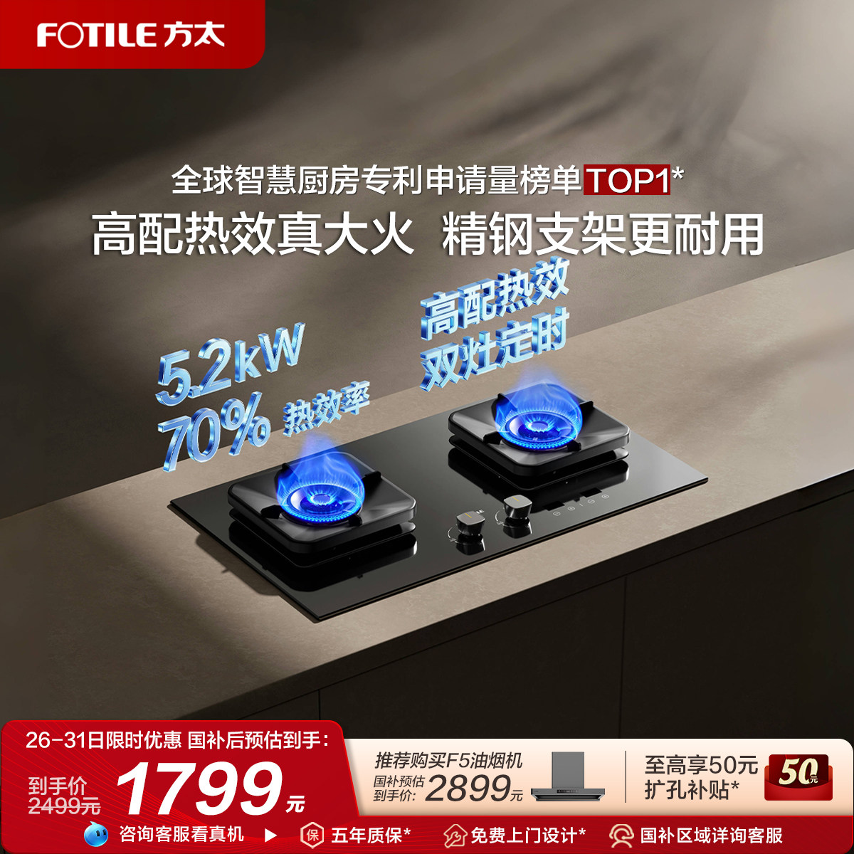 [新品]方太燃气灶TF37B煤气灶台双灶定时家用联动天然气官方旗舰