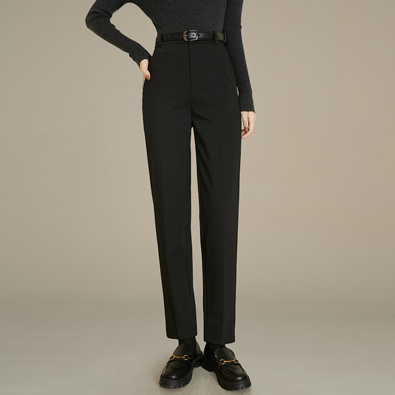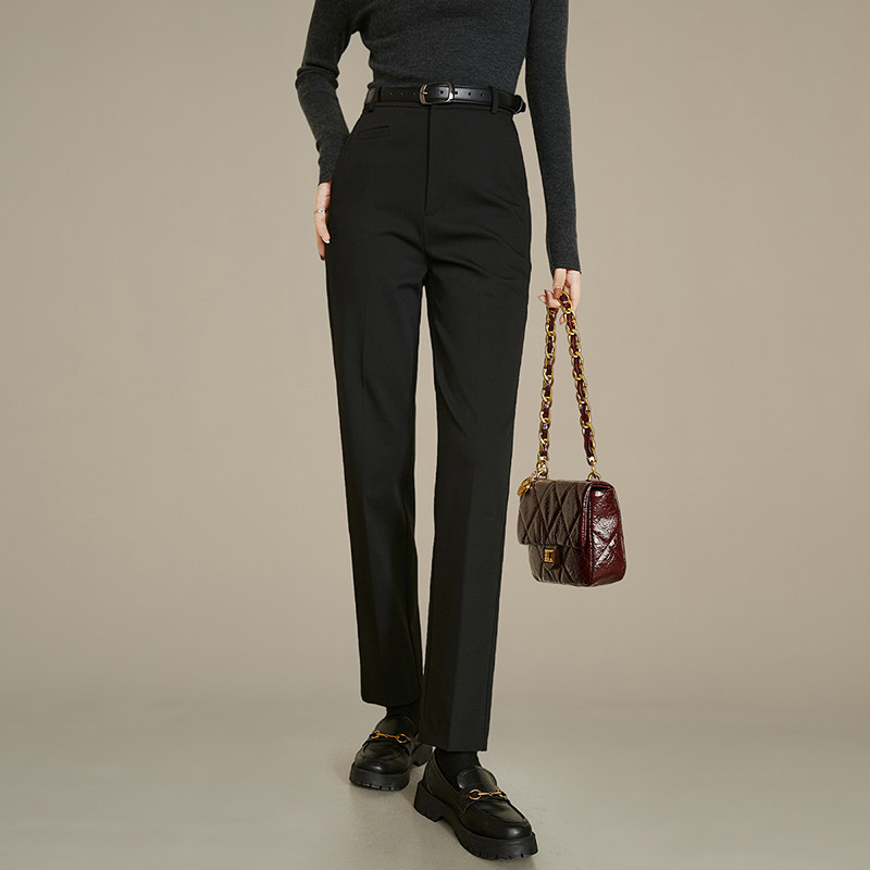 晚白2025年冬新款时尚休闲裤子薄绒弹力通勤小脚西装休闲裤女