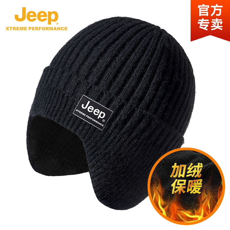 jeep吉普男士帽子冬季护耳围脖保暖棉防寒秋冬天针织加绒毛线帽男