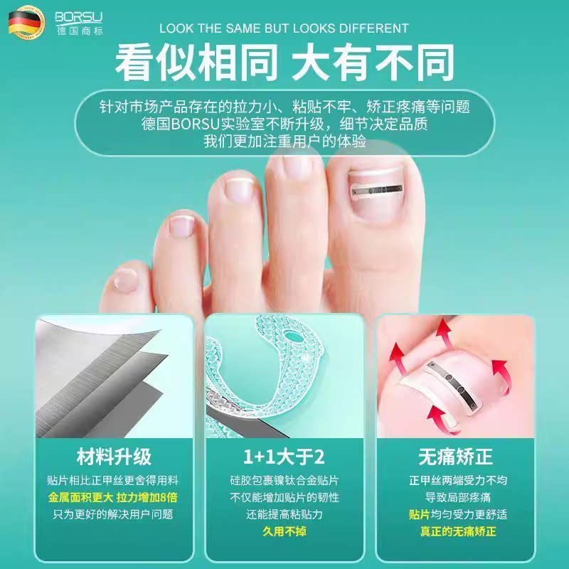 德国BORSU甲沟嵌甲矫正器炎正甲贴贴片脚趾指甲扎肉专用纠正神器