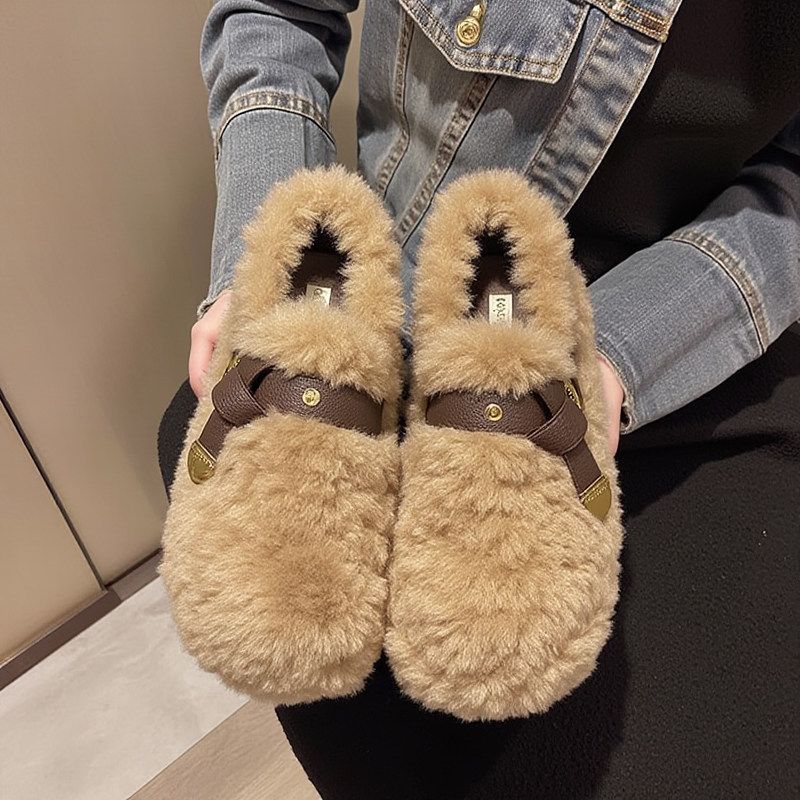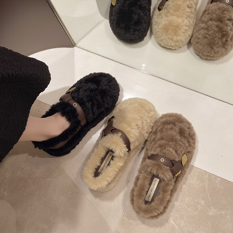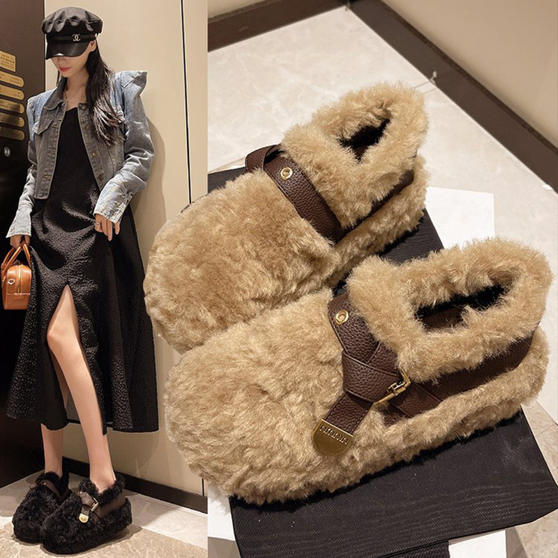 羊羔绒毛毛鞋女秋冬新款外穿厚底加绒懒人舒适美拉德棕色豆豆棉鞋