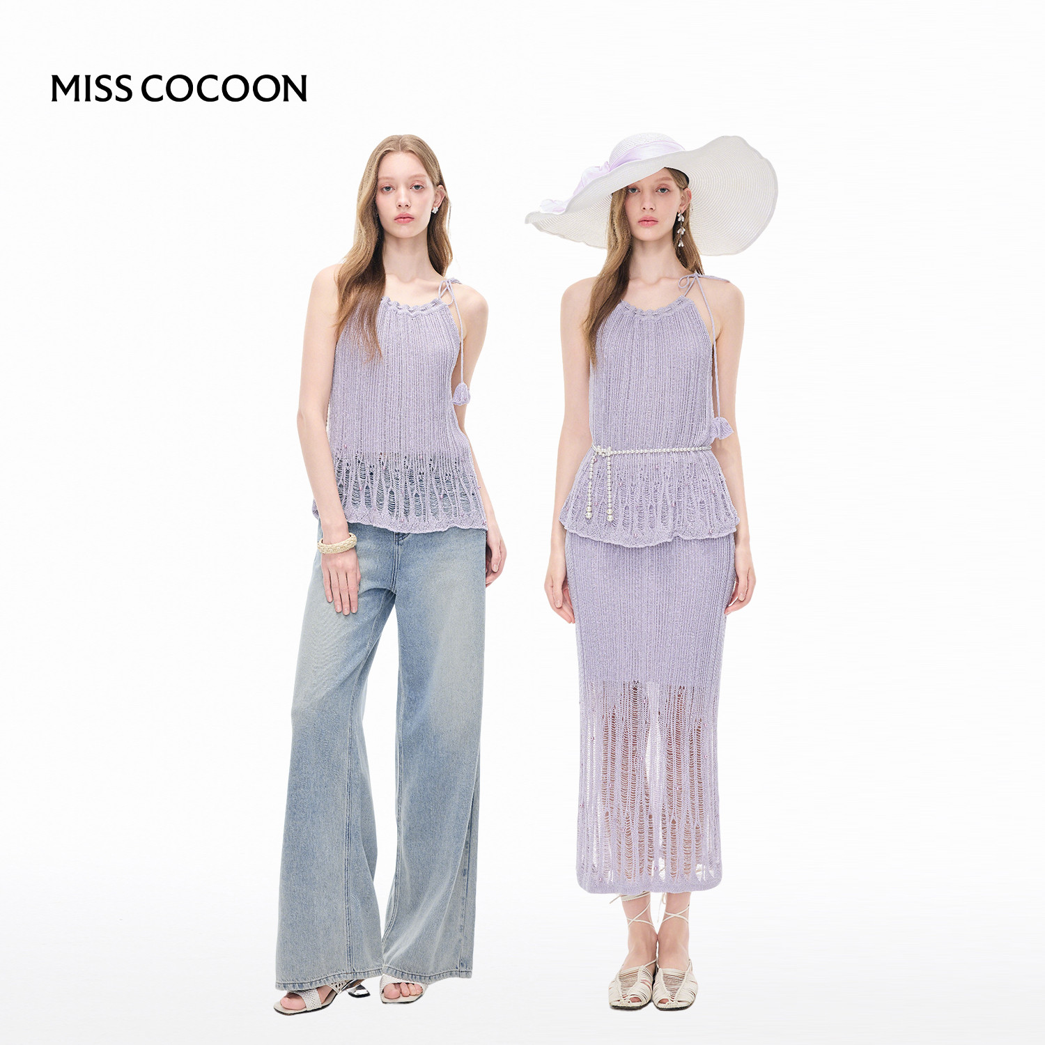MISSCOCOON可可尼挂脖吊带两件套女2025秋季新款度假半身裙套装