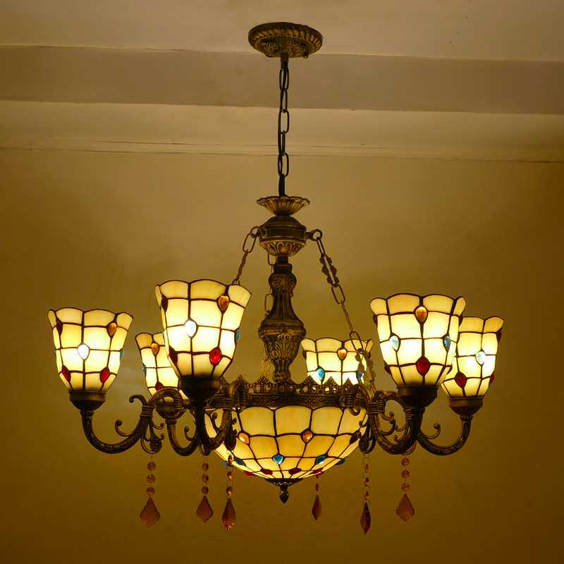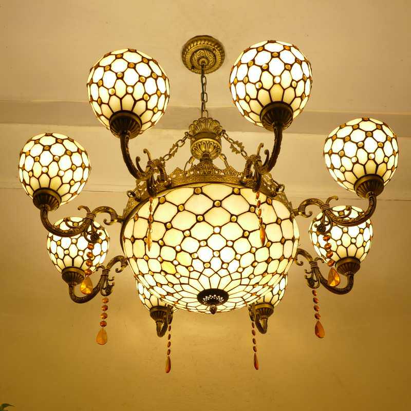 蒂凡尼创意欧式田园艺术灯具酒楼咖啡厅客厅复古彩色别墅灯饰吊灯