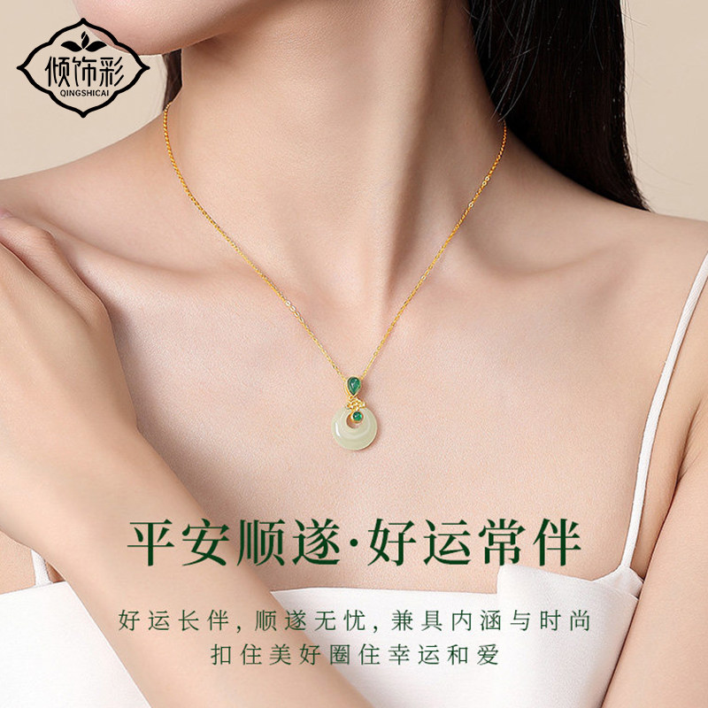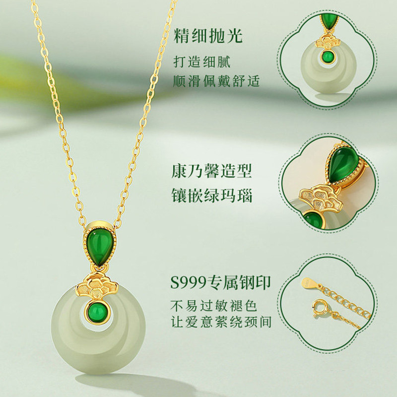 中国黄金央创玉平安扣项链女款母亲的生日礼物送妈妈新年礼物S925