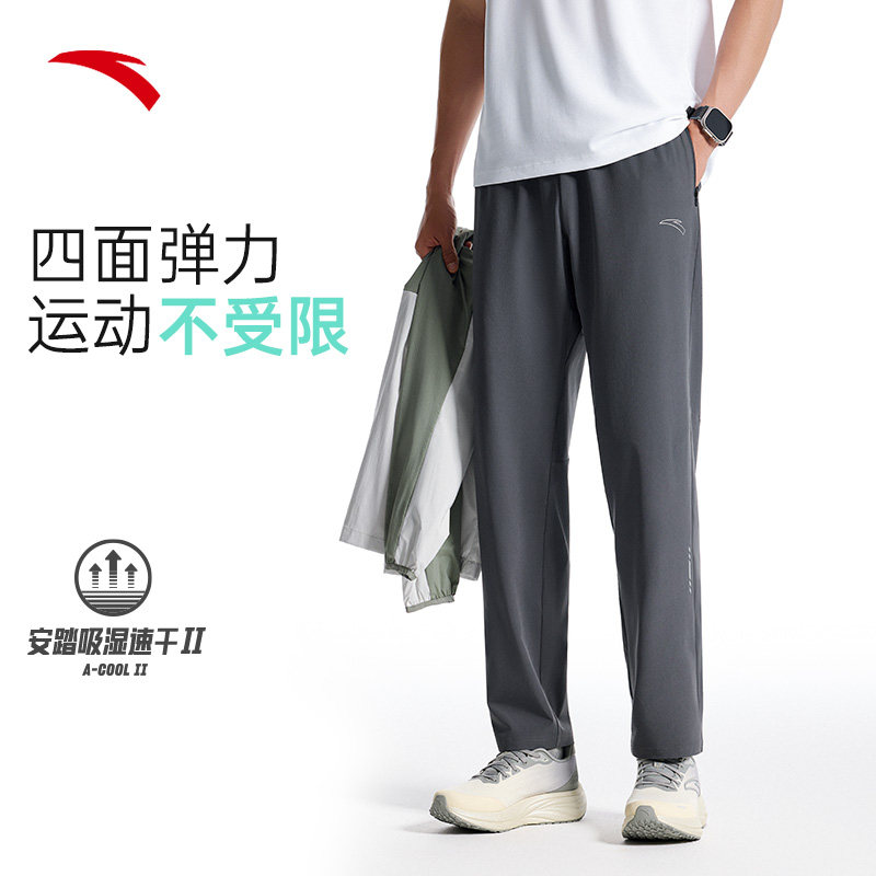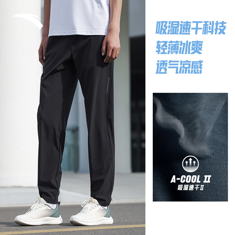 安踏运动长裤男士夏季卫裤梭织跑步训练黑色速干直筒裤透气男裤子