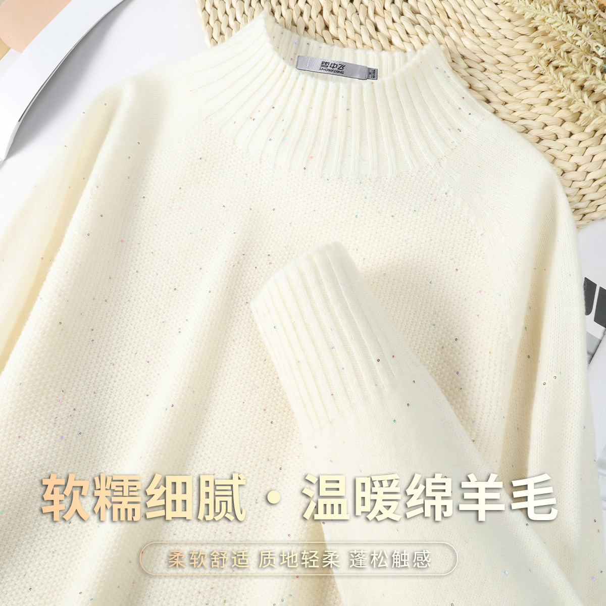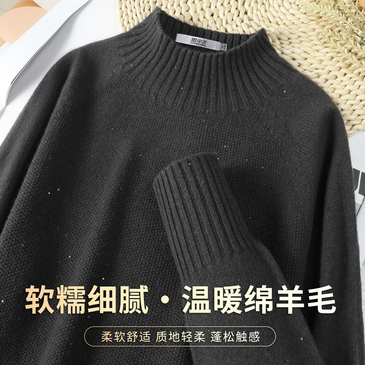 品牌高级感羊毛衫女半高领宽松毛衣秋冬加厚羊绒长袖针织打底衫新