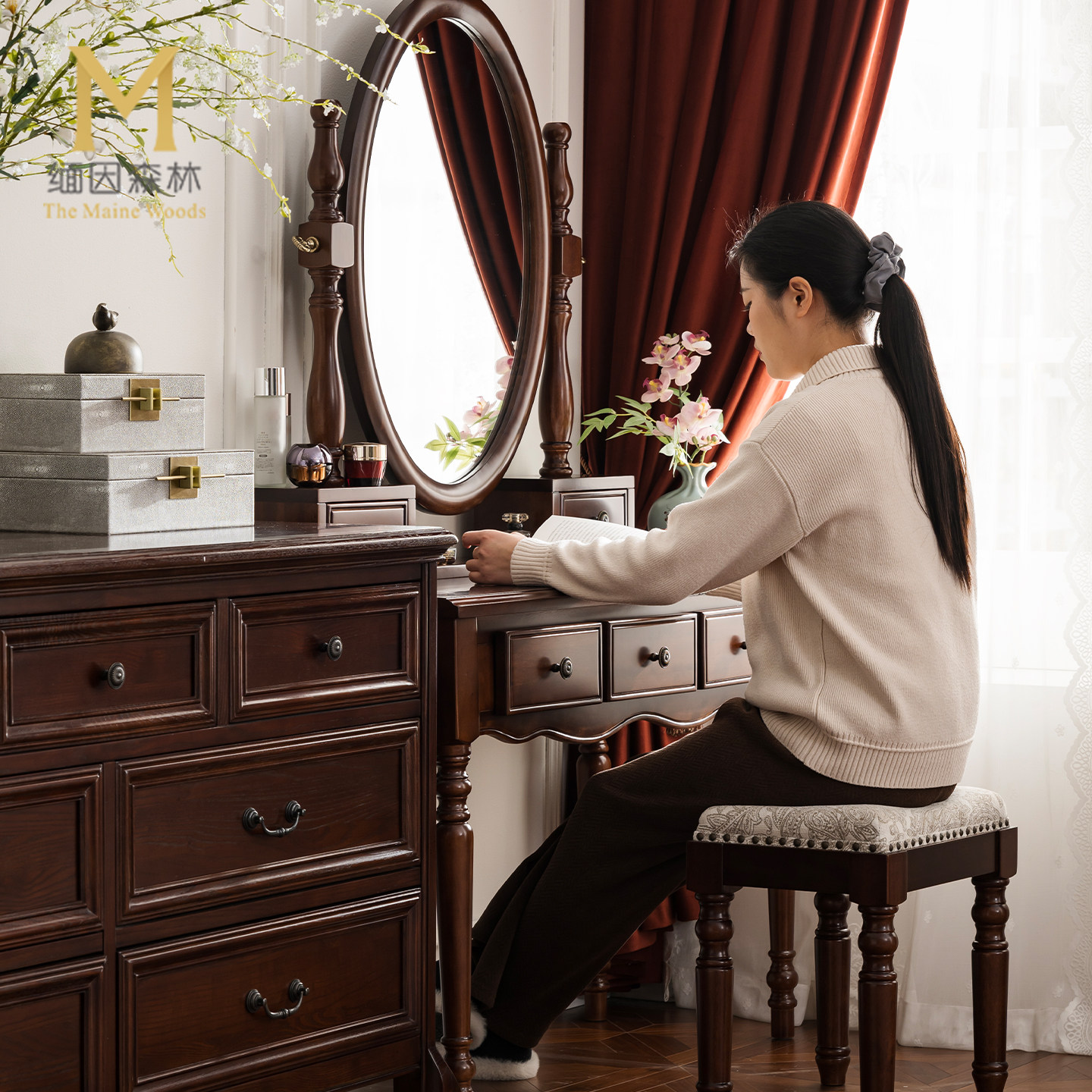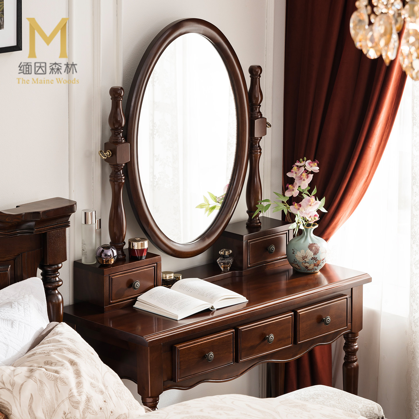 复古风梳妆台政府补贴纯实木法式化妆桌水性漆环保卧室梳妆镜