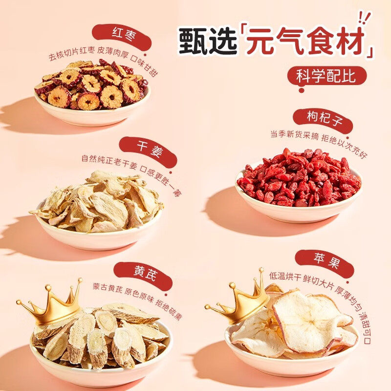 苹果黄芪茶素颜水搭麦冬红枣枸杞姜枣熬夜脸黄补气养血美容养颜茶