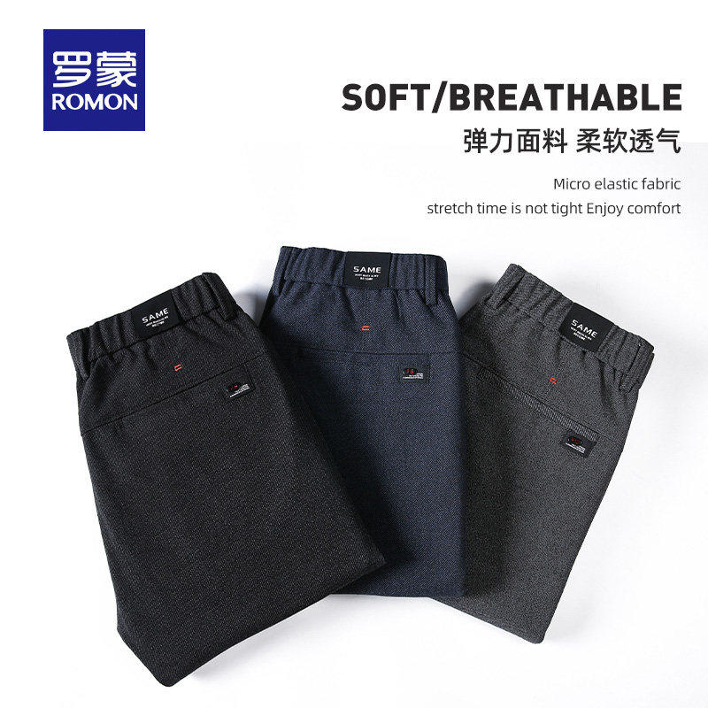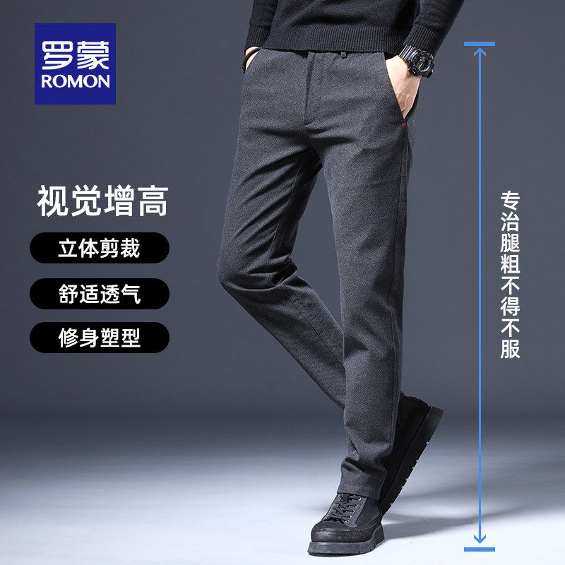 罗蒙加绒加厚男士休闲裤商务休闲秋冬季新款弹力直筒西裤秋冬款