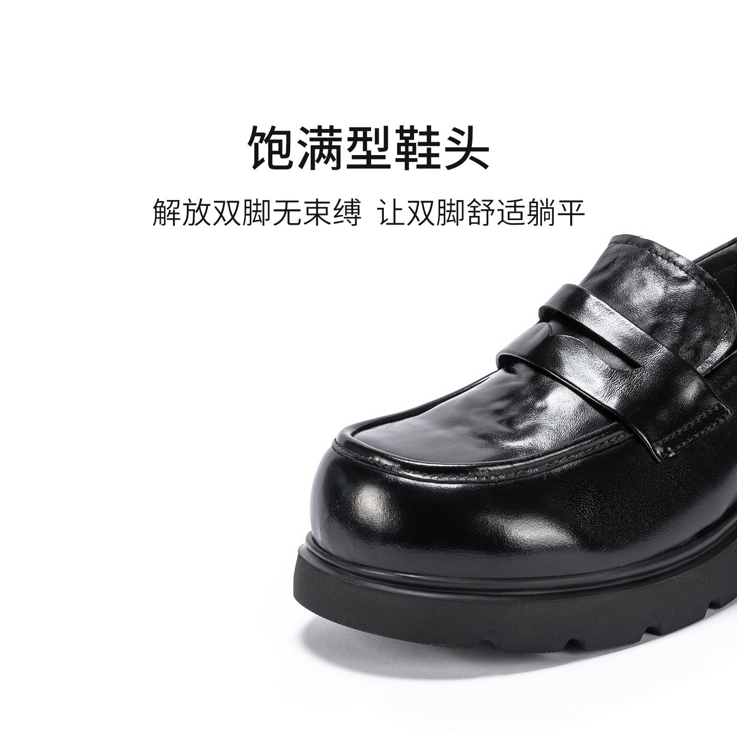欧货真皮厚底小皮鞋女英伦风圆头加绒德比鞋小个子增高乐福鞋单鞋