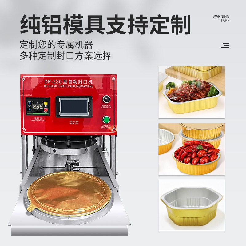 气动铝箔餐盒封口机一机多模酒店燕窝海参炖品海鲜全自动封盖机锡