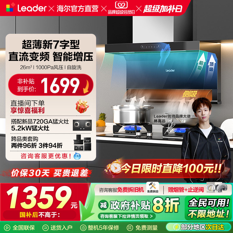 [政府补贴]海尔智家统帅吸抽油烟机家用厨房大吸力懒人92DPlus