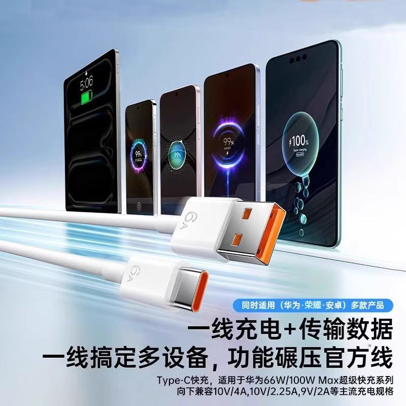 66W快充数据线适用华为120W超级tpyec安卓手机快充电线Type-C充电器线6A官方USB快充线插头车载安卓通用正品