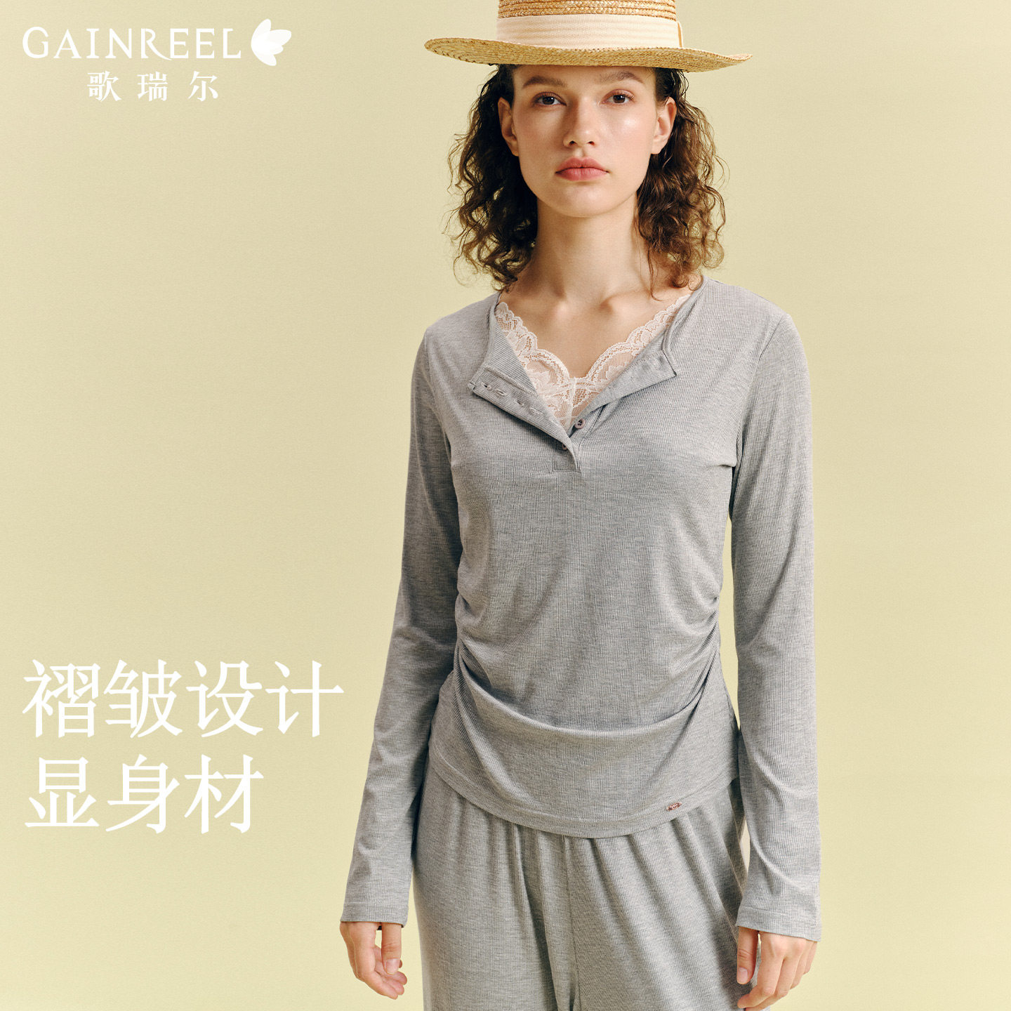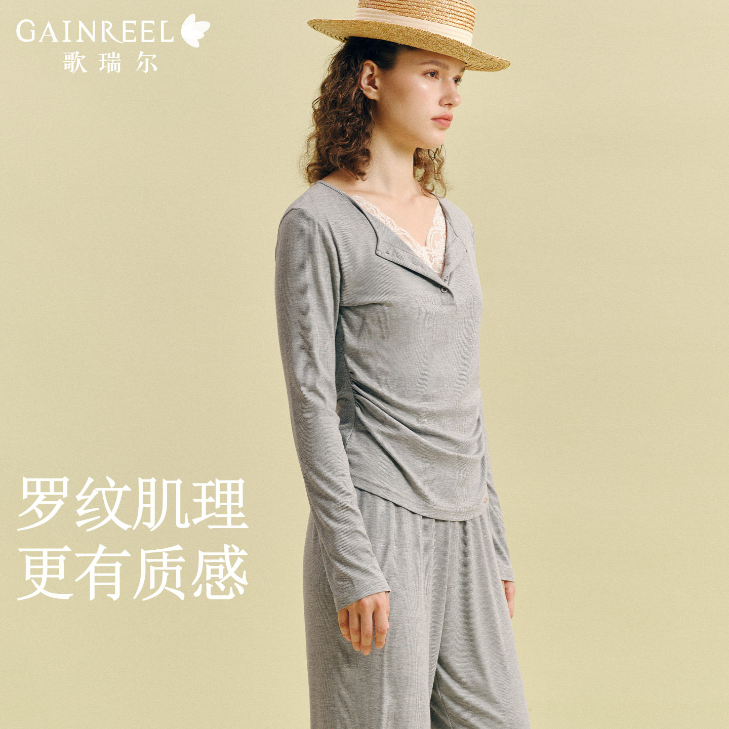 歌瑞尔假两件可外穿睡衣女款2026新款女士长袖春季薄款罗纹家居服
