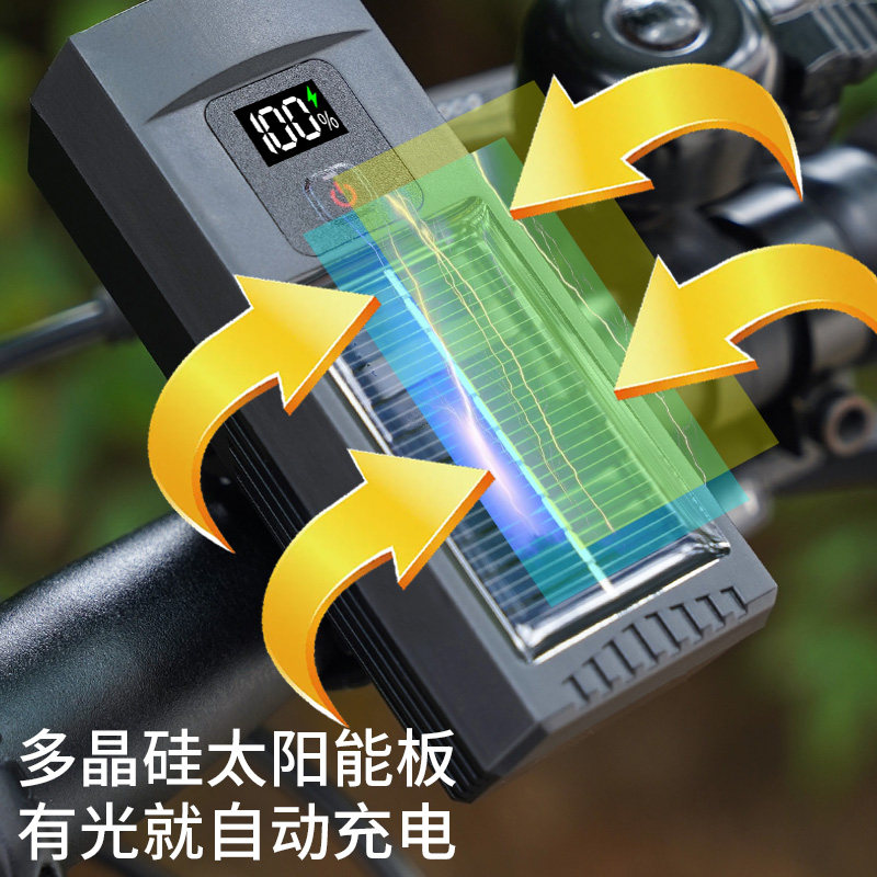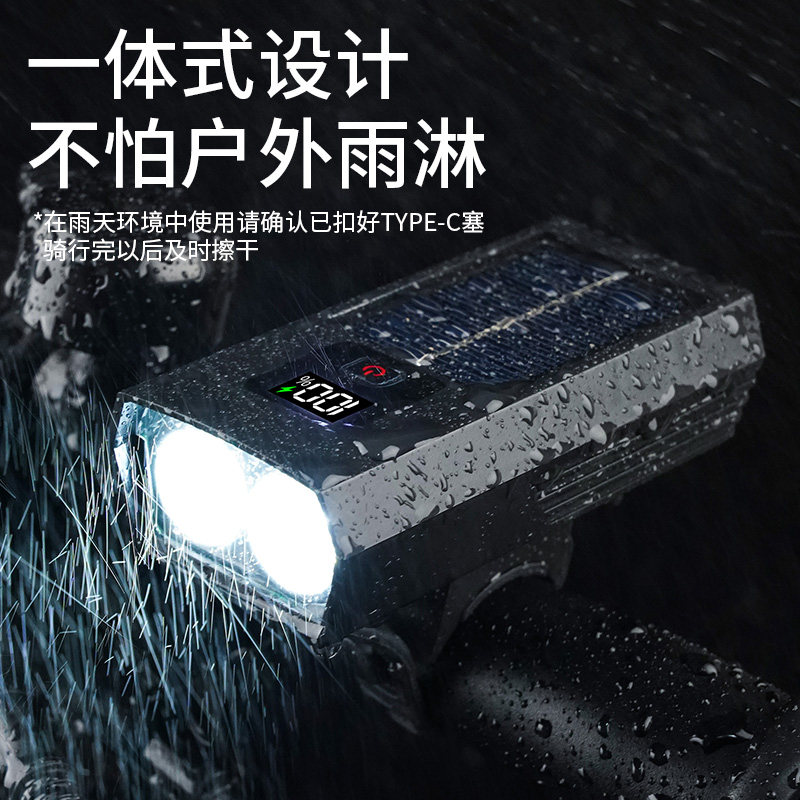 太阳能自行车夜骑灯双灯芯前灯手电筒骑行车灯强光充电电池超亮
