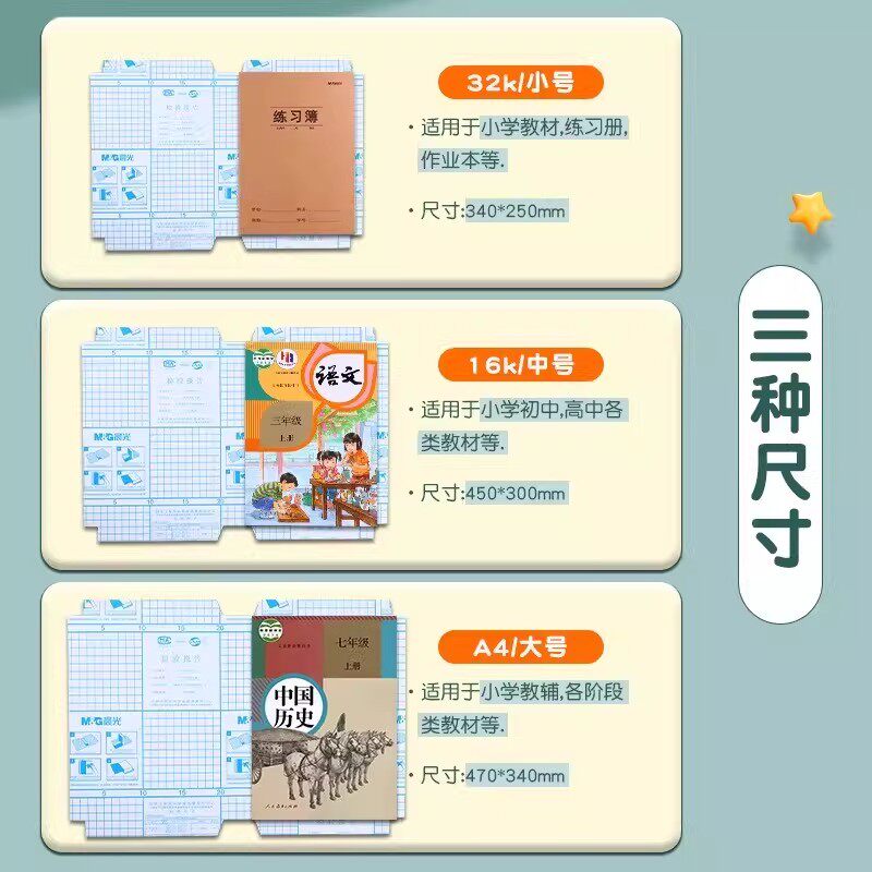 晨光书皮包书皮自粘透明磨砂16K贴纸书套加厚分段式A4包书膜防水耐磨全国中小学生教材通用包装纸课本保护套