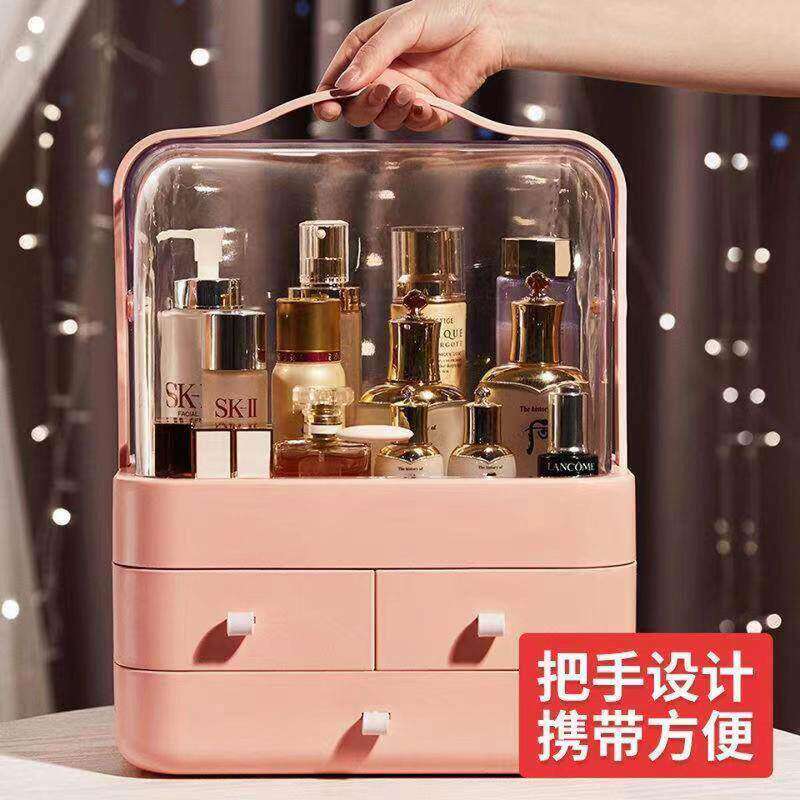 网红化妆品收纳盒防尘置物架抽屉式桌面护肤品收纳家用口红梳妆台