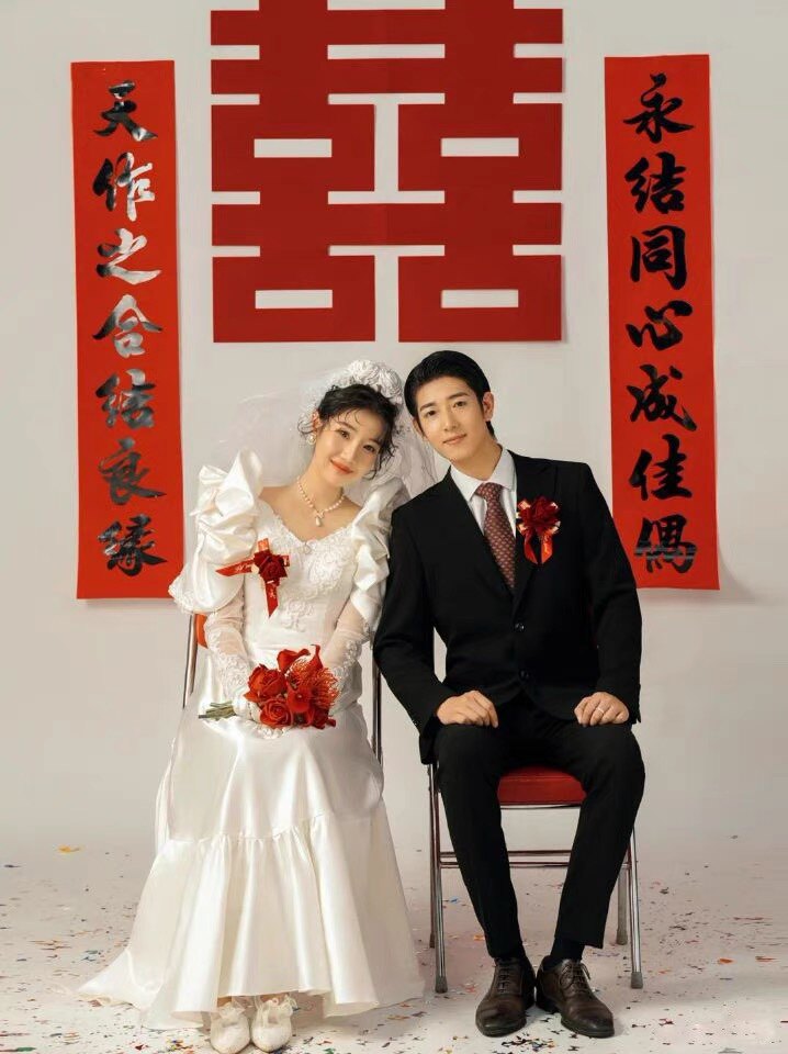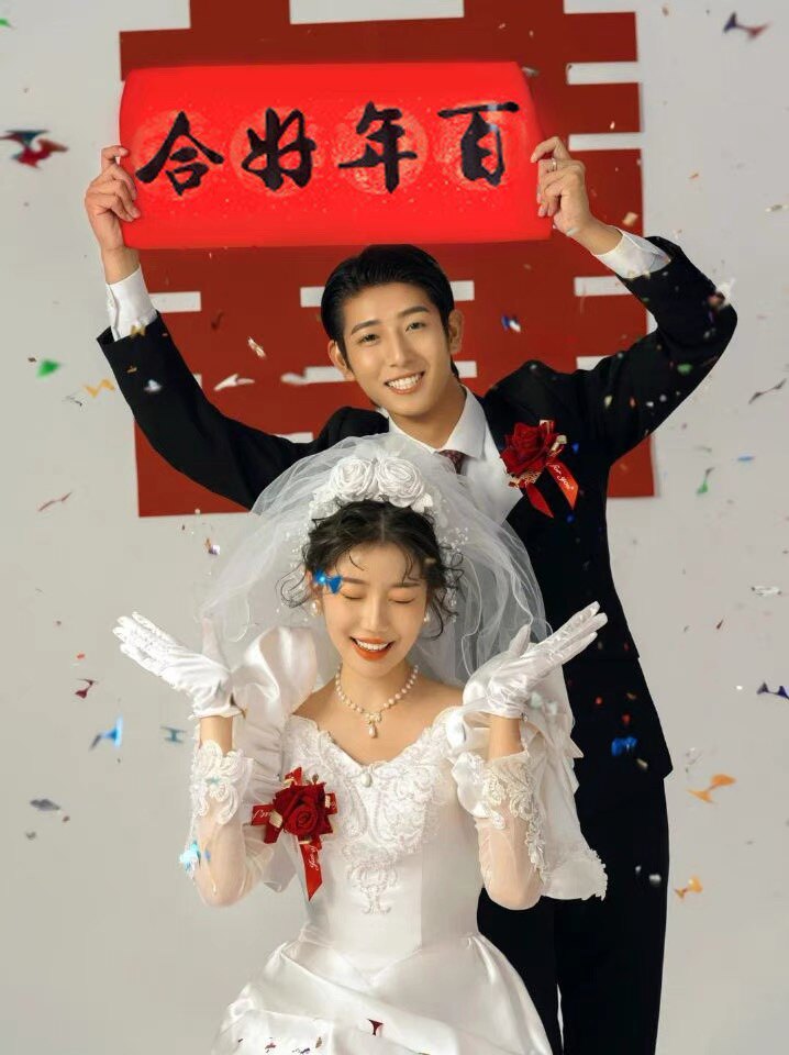 婚纱照摄影道具大红色毛毡喜字百年好合永结同心对联影楼拍照椅子