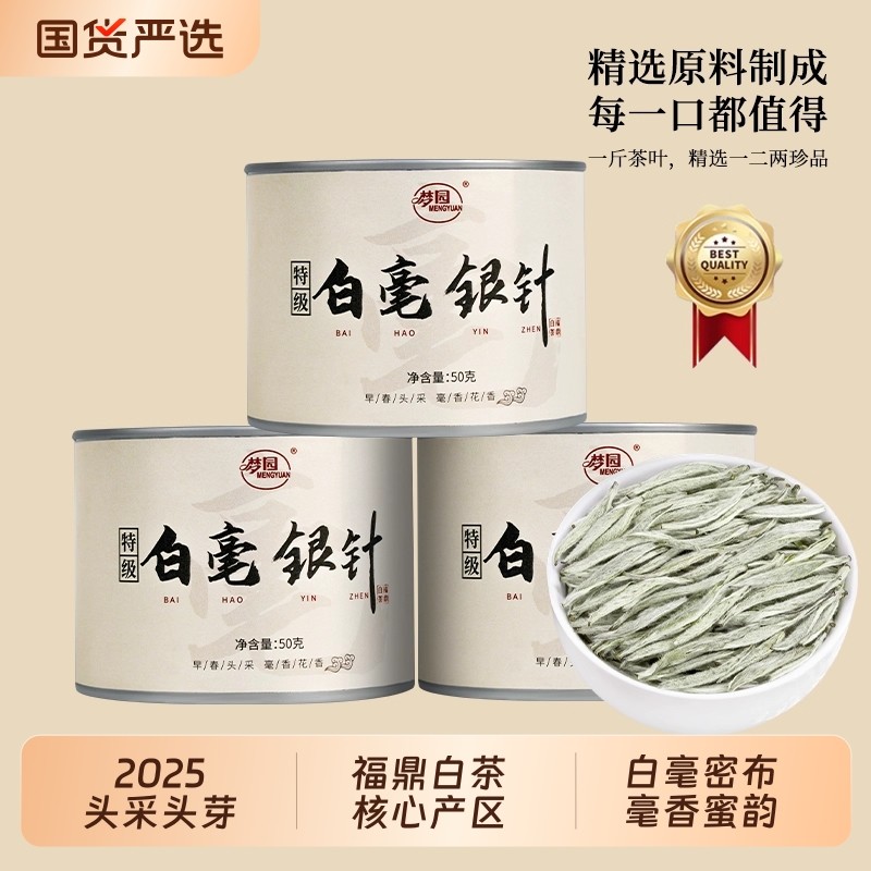 特级白毫银针官方旗舰店2025新茶叶正宗福鼎白茶明前头采嫩芽罐装