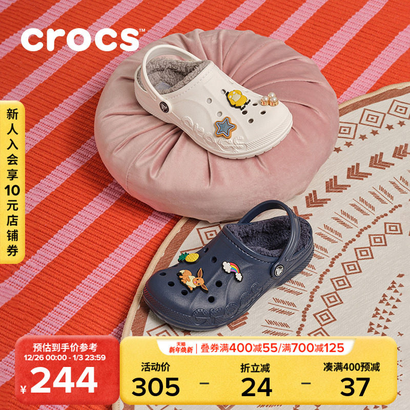 Crocs卡骆驰洞洞鞋成人男女童保暖加绒秋冬亲子棉鞋棉拖|207500