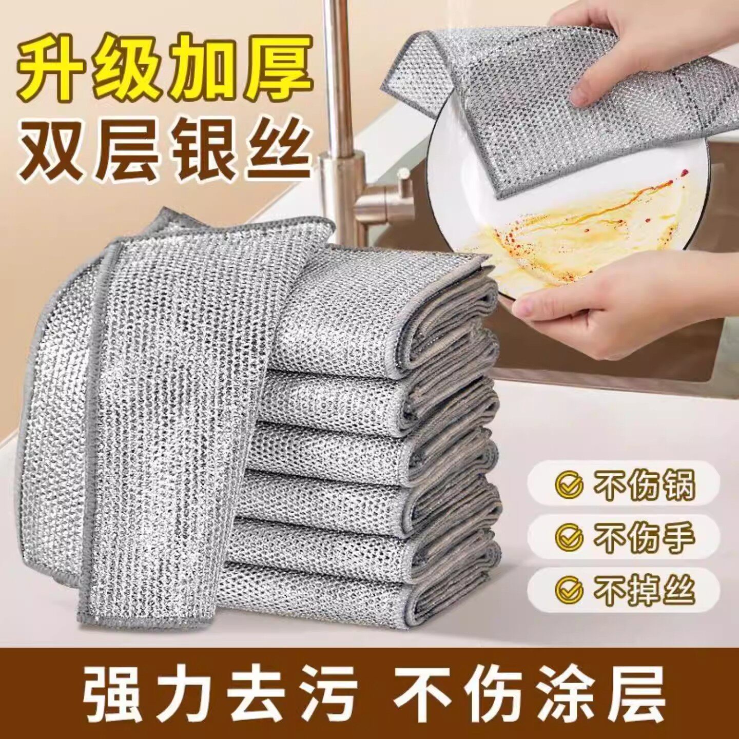 钢丝洗碗布银丝抹布厨房专用双面网格不沾油易清洗不伤锅百洁布