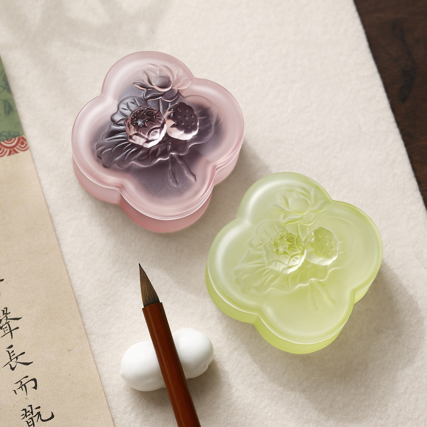 水晶玻璃墨盒带盖不干墨火锅砚墨水墨碟墨盒墨池高颜值保湿摆件透明书法专用高档文房四宝墨汁玻璃墨盘