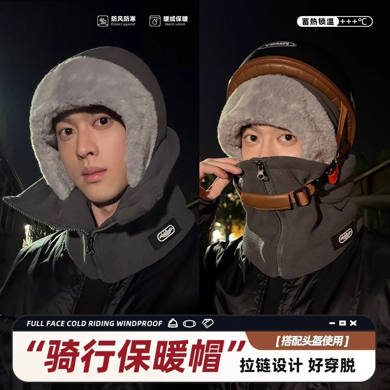 骑车防风防寒帽子秋冬面罩围脖一体男女2025新款电动车雷锋帽保暖