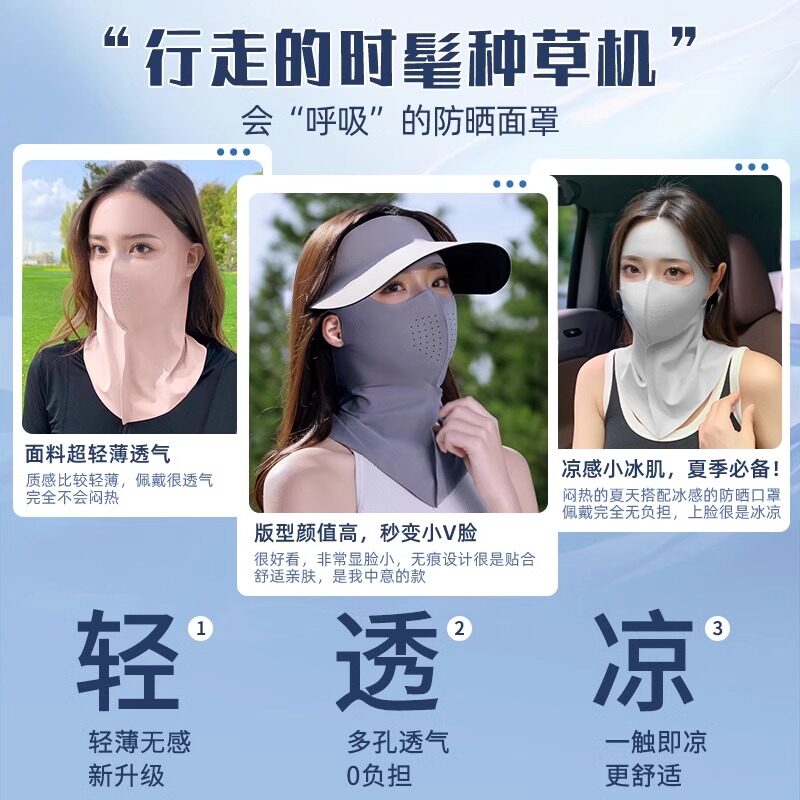 全脸防晒面罩女防紫外线2026新款夏季脸基尼口罩护颈一体冰丝透气