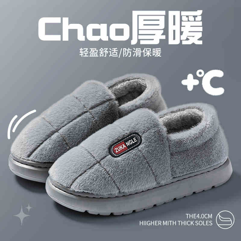 包跟棉拖鞋男士冬季2024新款室内家居厚底保暖加绒毛棉鞋女款防滑