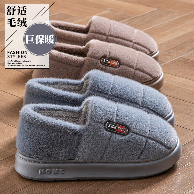 朴西棉拖鞋女士秋冬季厚底简约保暖室内居家用软底防滑情侣棉拖男