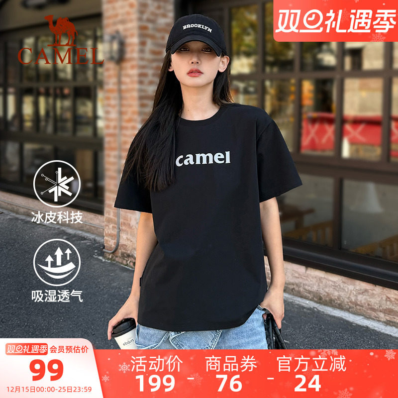 骆驼三防T神夏日运动T恤2025夏季棉感男女款防水防污短袖宽松上衣
