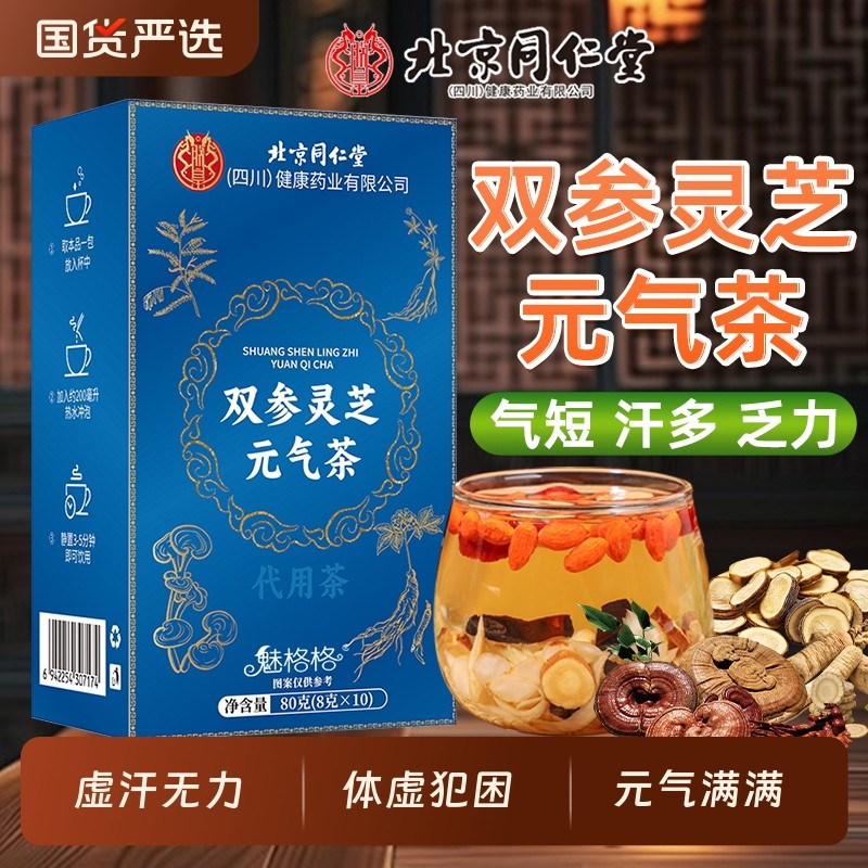 北京同仁堂双参灵芝元气茶补气西洋参党参黄芪组合养生茶四宝茶包