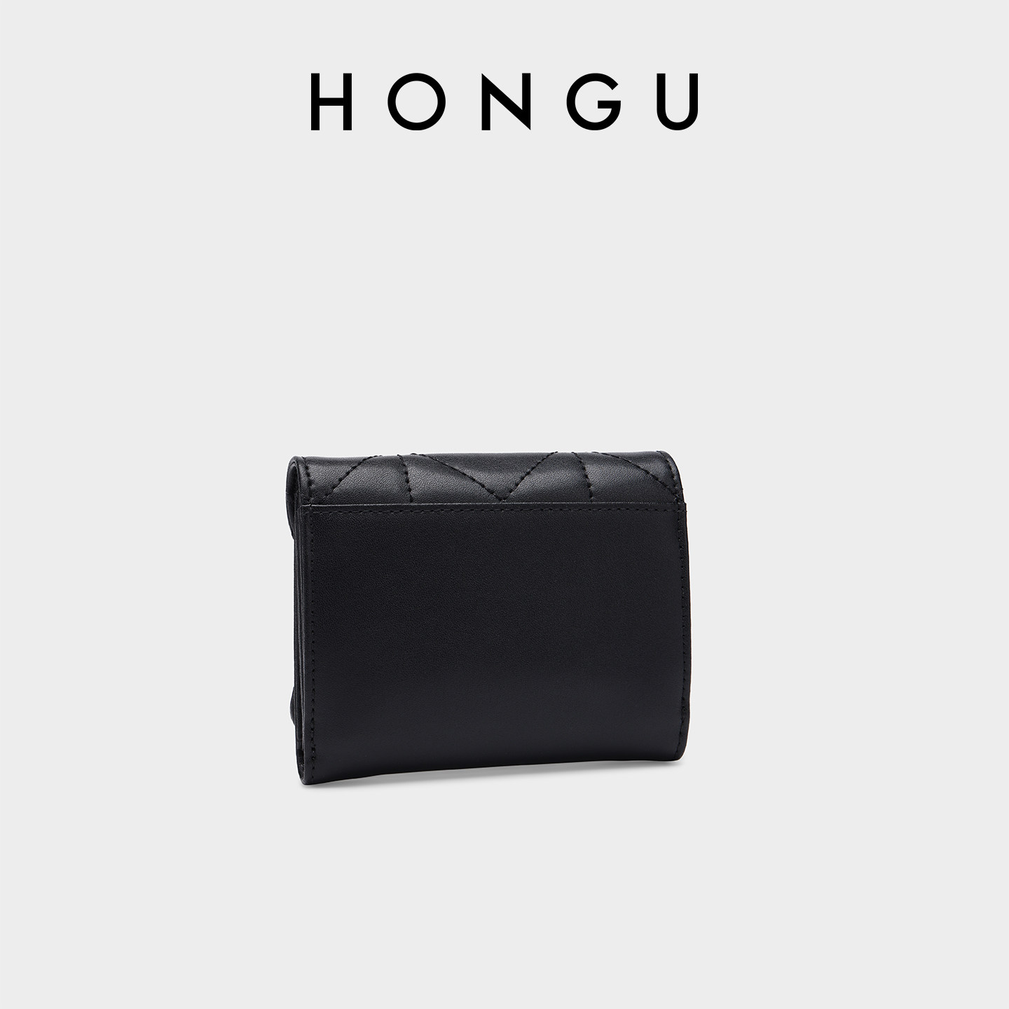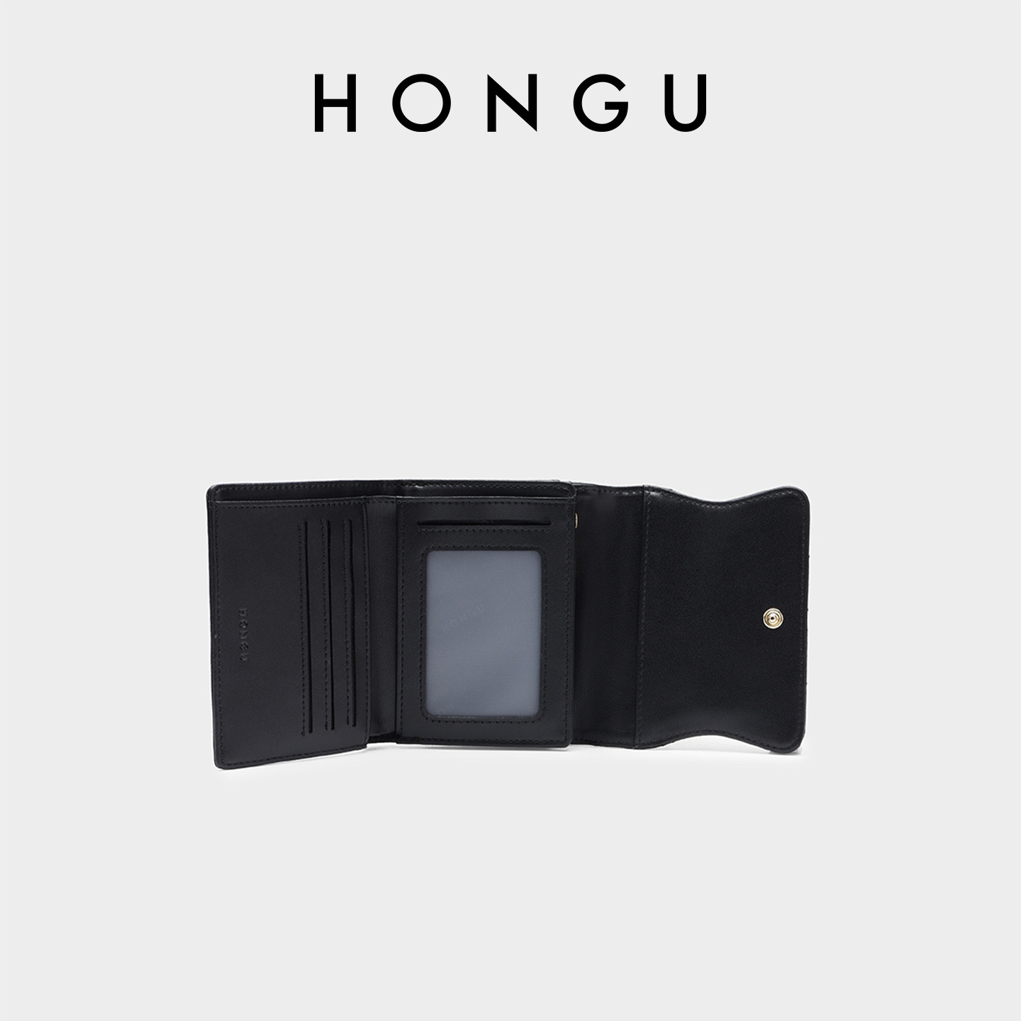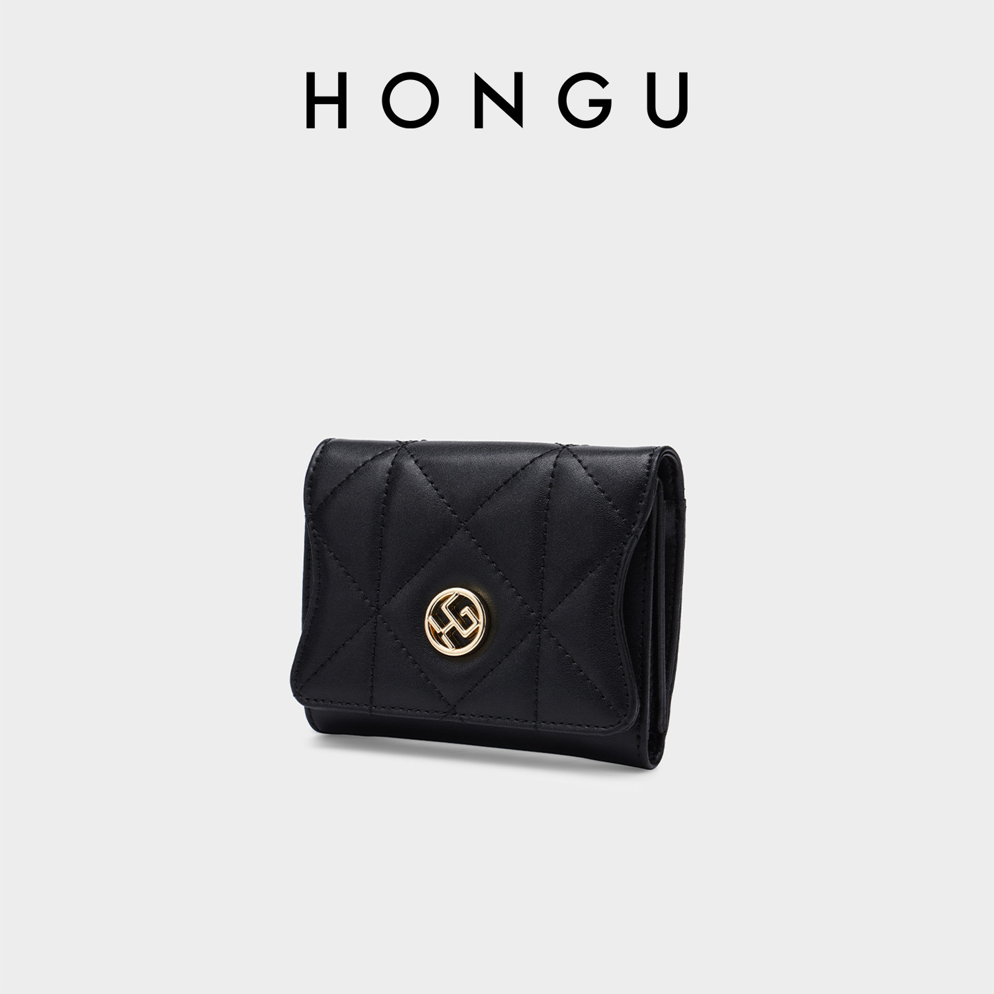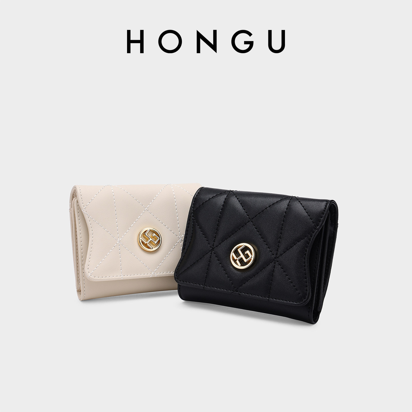 红谷新款牛皮钱包女短款折叠薄款皮夹时尚小巧绣线钱夹零钱包手包