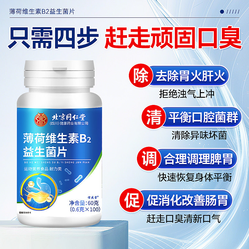 北京同仁堂口香糖清新口气去口臭专用无糖精留香果薄荷糖含片瓶装