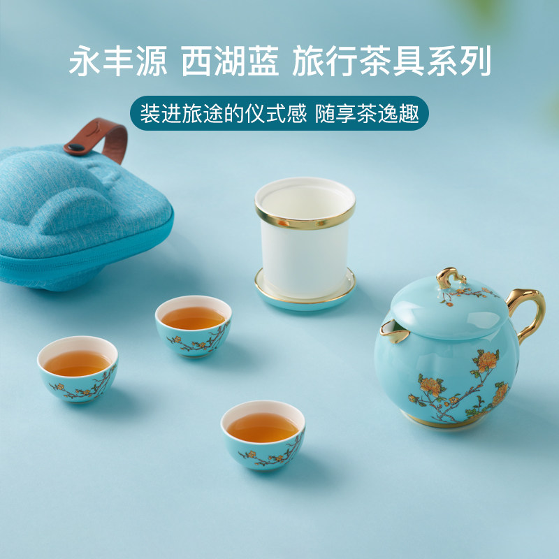 【轻奢礼赠】永丰源西湖蓝4头7头旅行茶具快客杯陶瓷茶壶套装礼盒