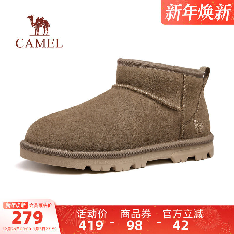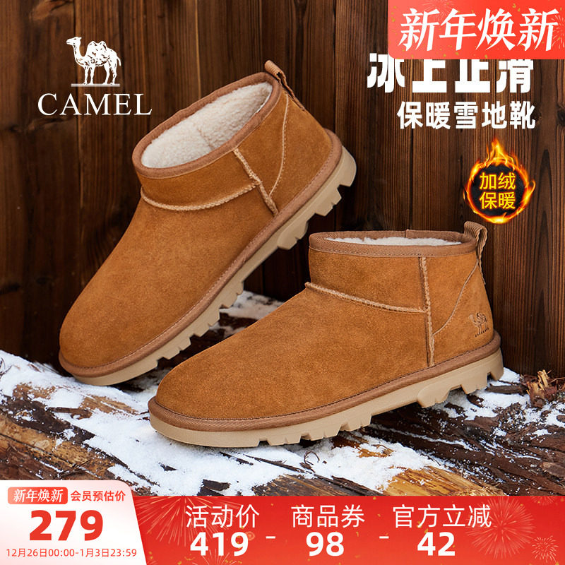 骆驼男鞋2025冬季新款加绒保暖皮毛一体靴子男女同款休闲雪地靴