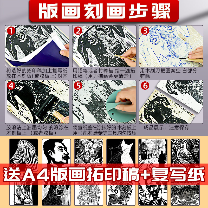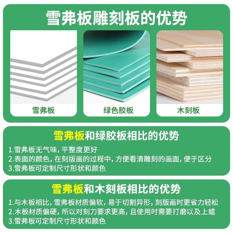 马利雪弗板版画雕刻板拓印画画初学者PVC板代木板版画手工雕刻板油墨滚筒刻刀专业手工雕刻版画工具套装