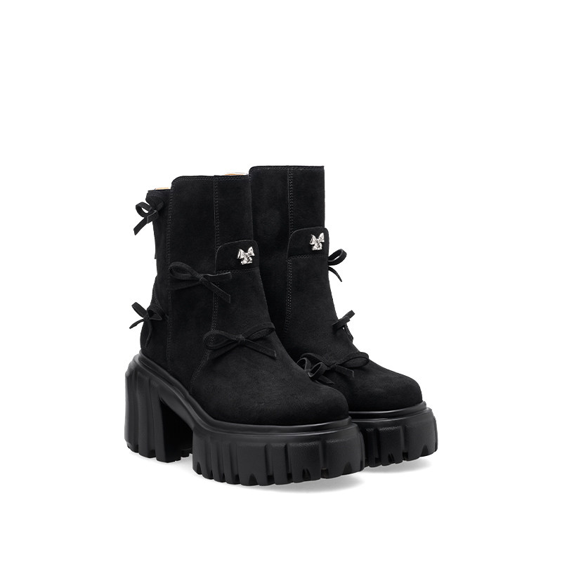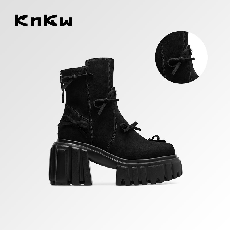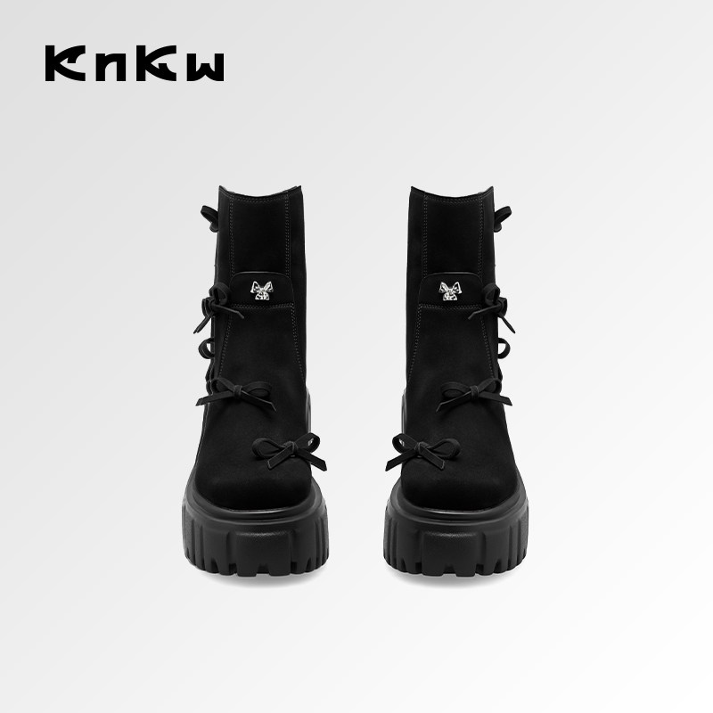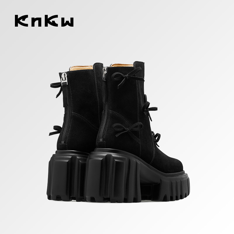 knkw天使光翼短靴英伦风绒面厚底马丁靴女款2025秋冬新款时尚女鞋
