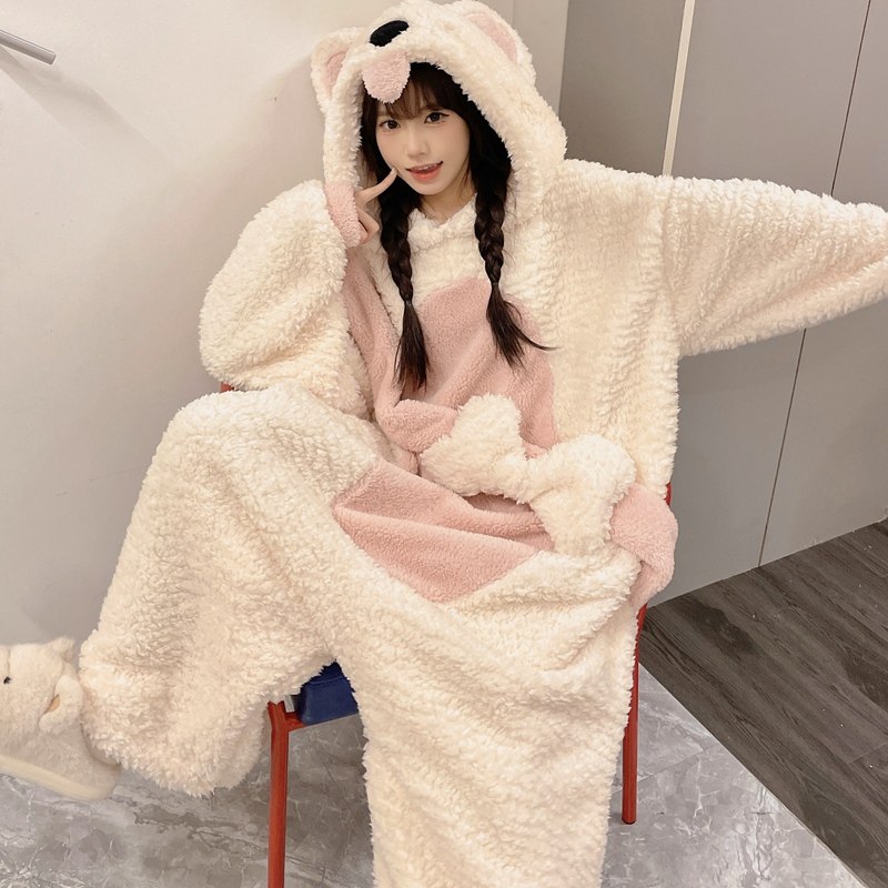 肖战同款猫人暖绒绒家居服半边绒男女2025新款冬季睡衣可外穿加厚